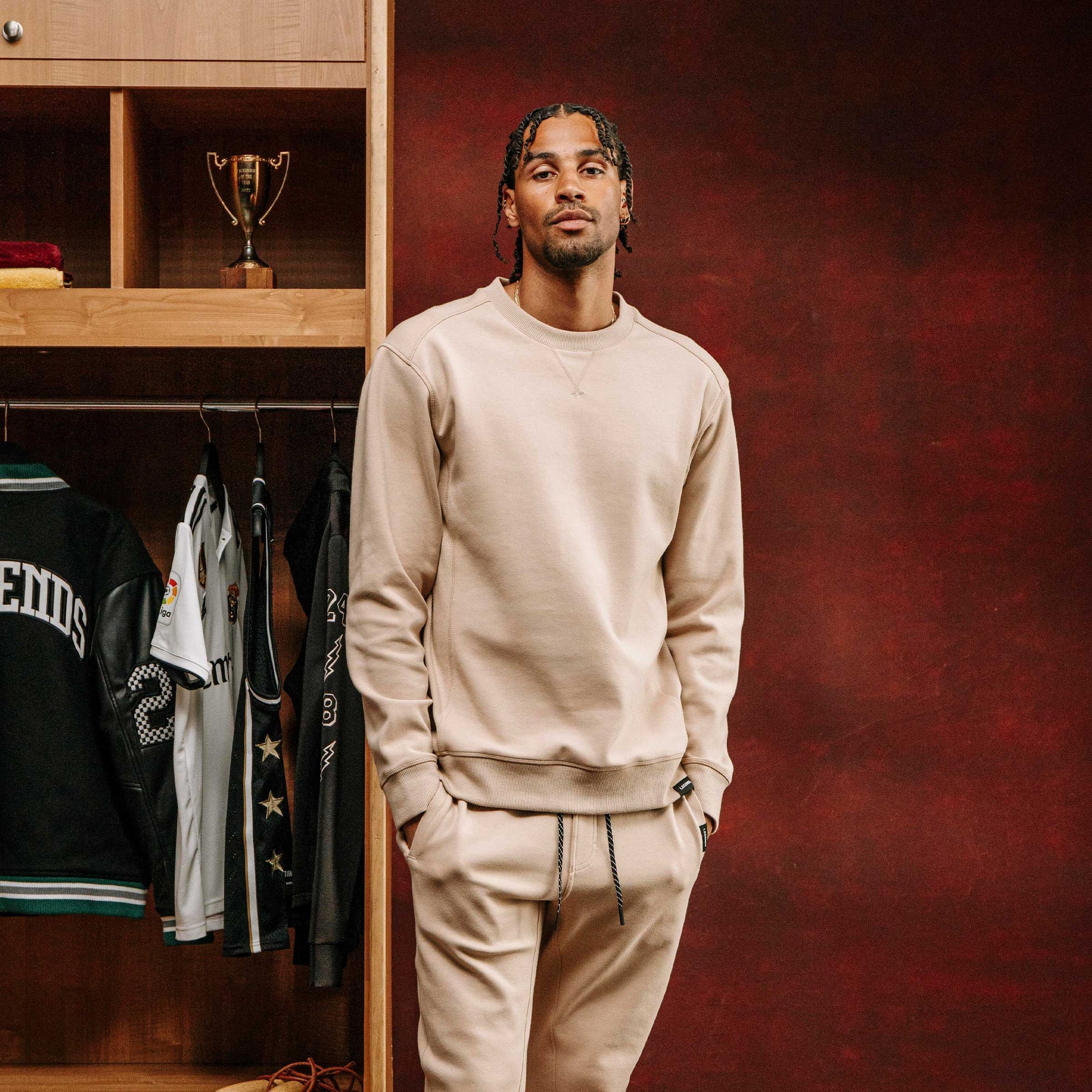 Mid-weight cotton knit crewneck with a rib-side panel for mobility and antimicrobial fabric with moisture-wicking properties.