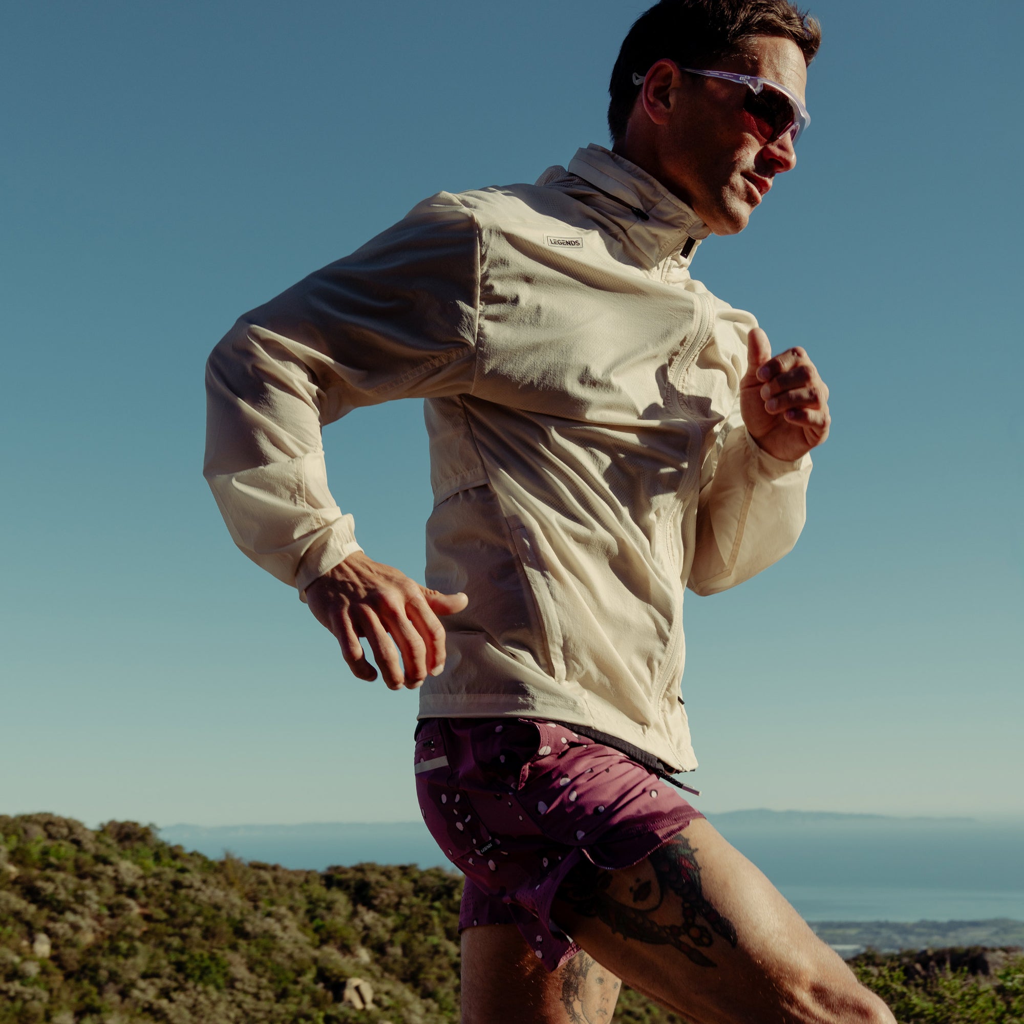 Introducing the Pace Windbreaker: your ultimate shield against the elements. Crafted from our exclusive Wind-Tech™ nylon, this full-zip jacket offers exceptional windproof protection and water resistance while remaining incredibly lightweight. It includes a packable hood, front zip pockets, and an adjustable hem for a customizable fit. The athletic build, coupled with a breathable mesh lining and reflective details, ensures you stay comfortable and visible during outdoor training sessions.